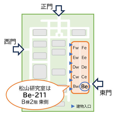 松山研究室は、生産技術研究所研究棟(B棟)2階の東側【Be-211】にあります。